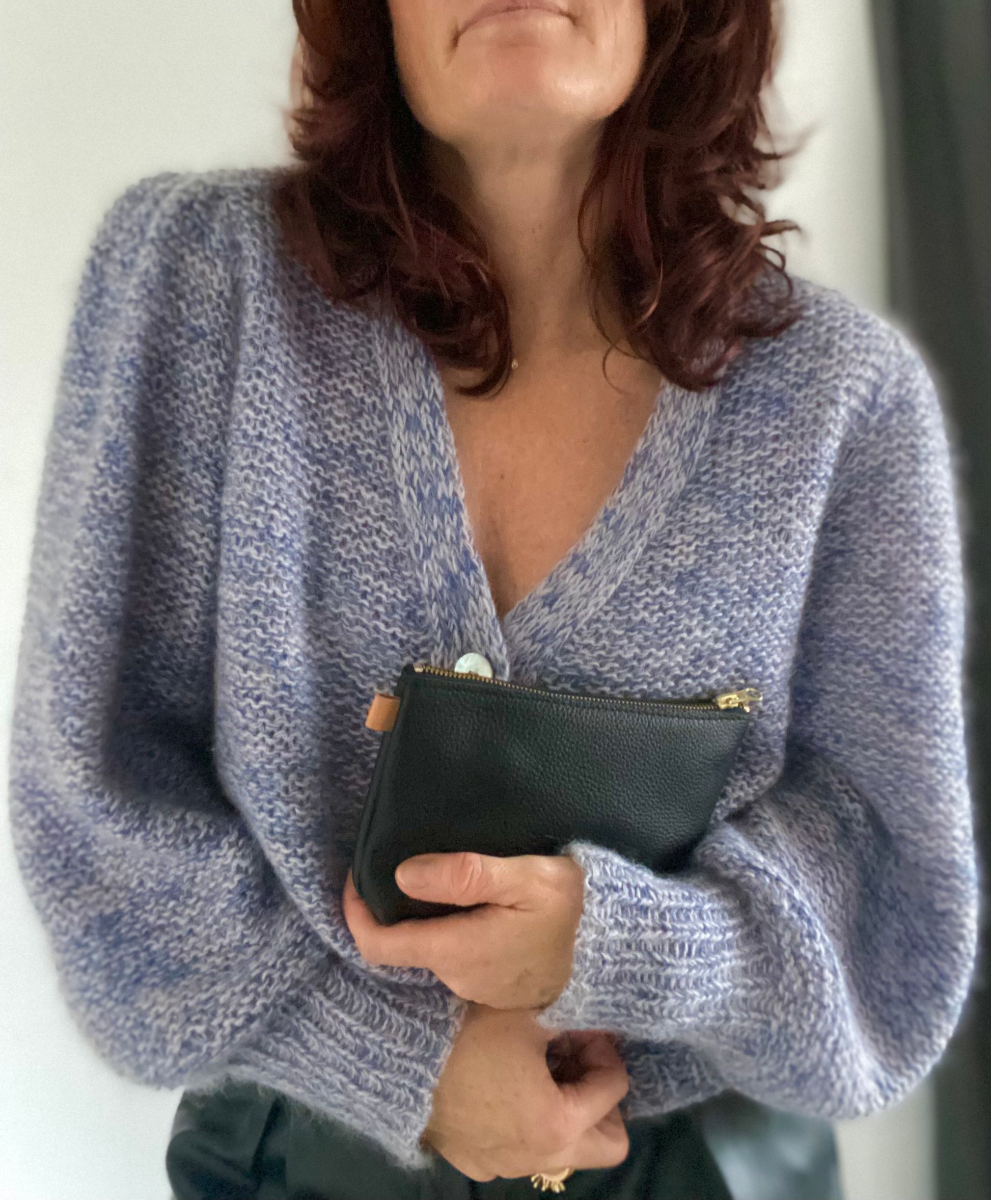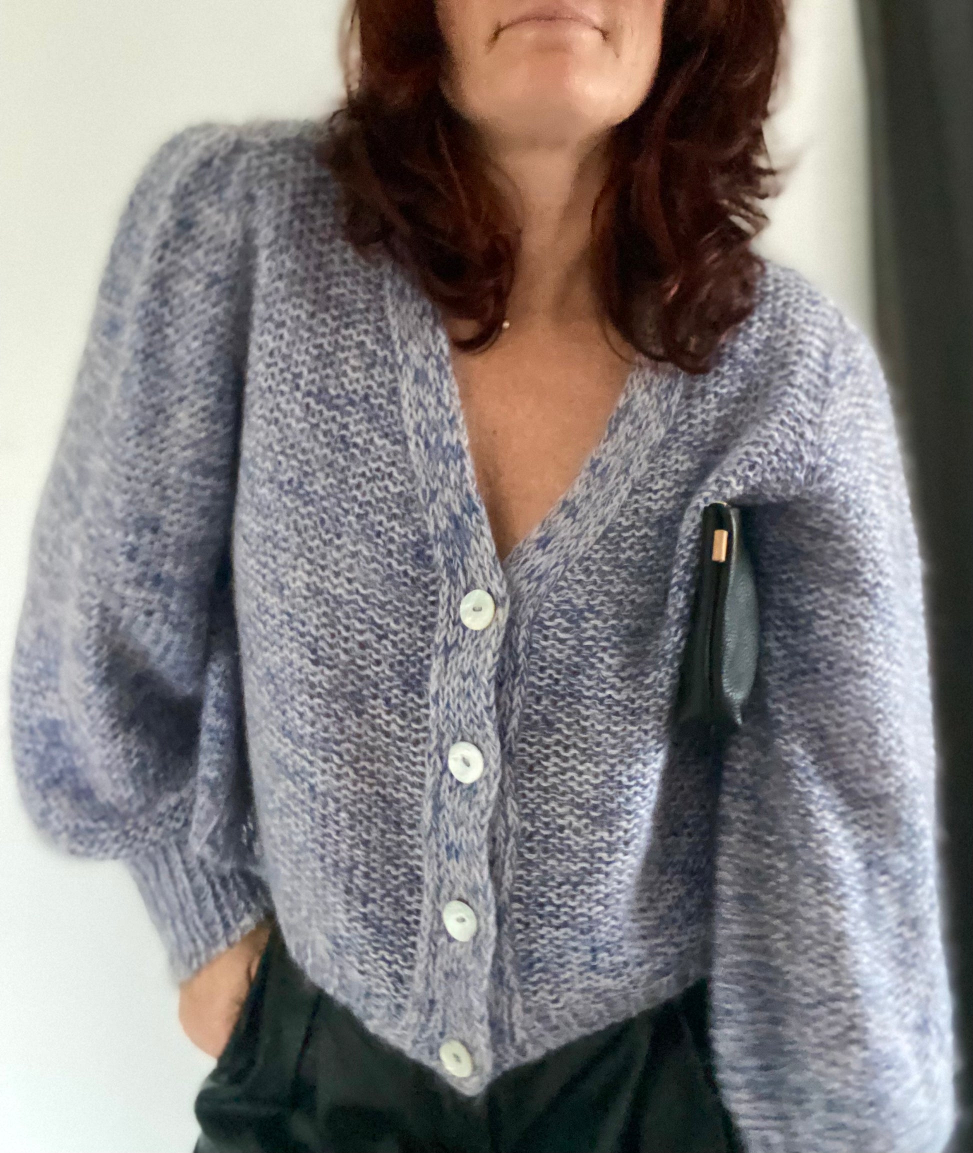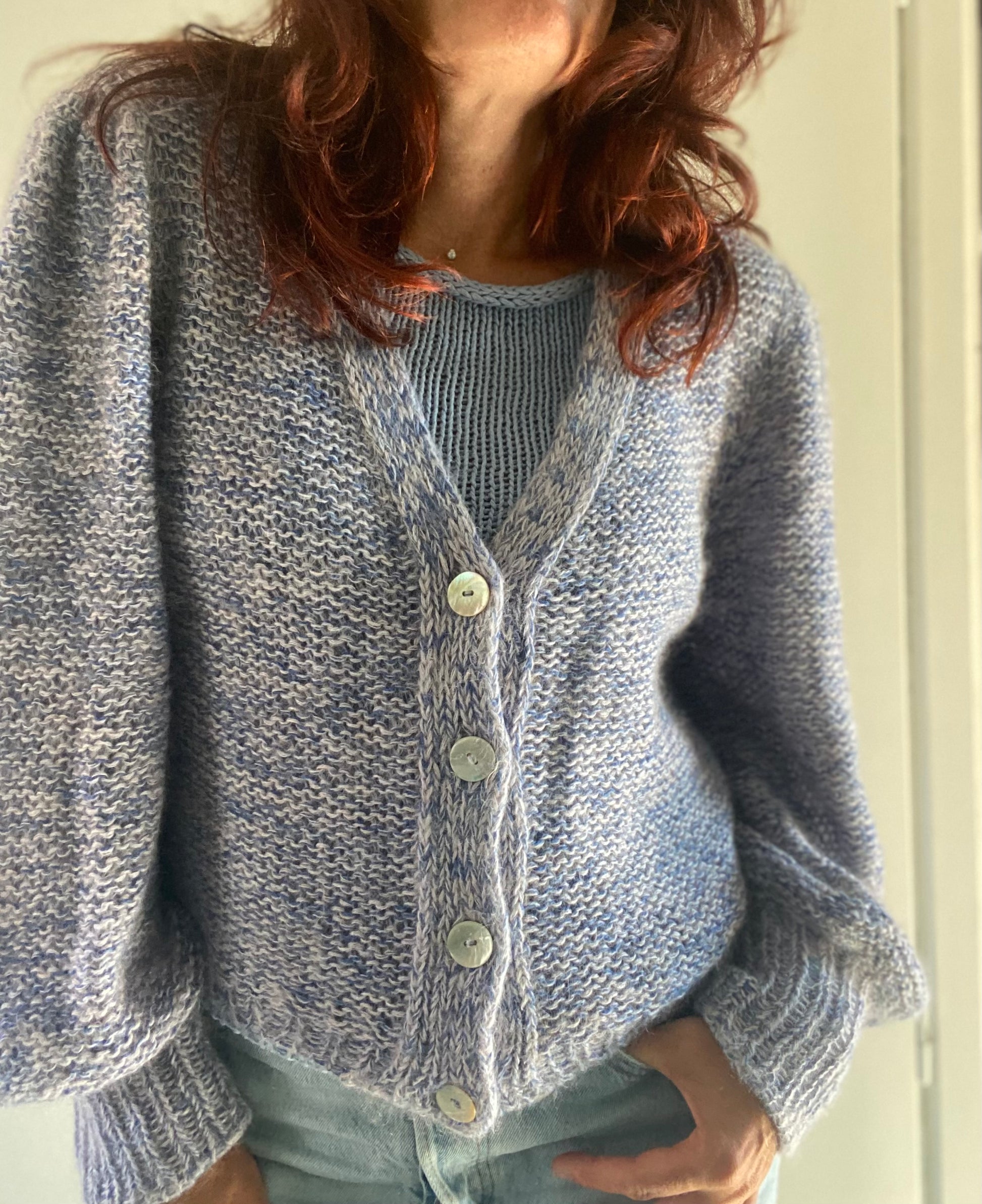 Images: The Blue Puff Your Vibe Cardi is worked with 2 strains Önling No 10 color 1115 & 3628 and 2 strains Önling No 12 color 12 &14.