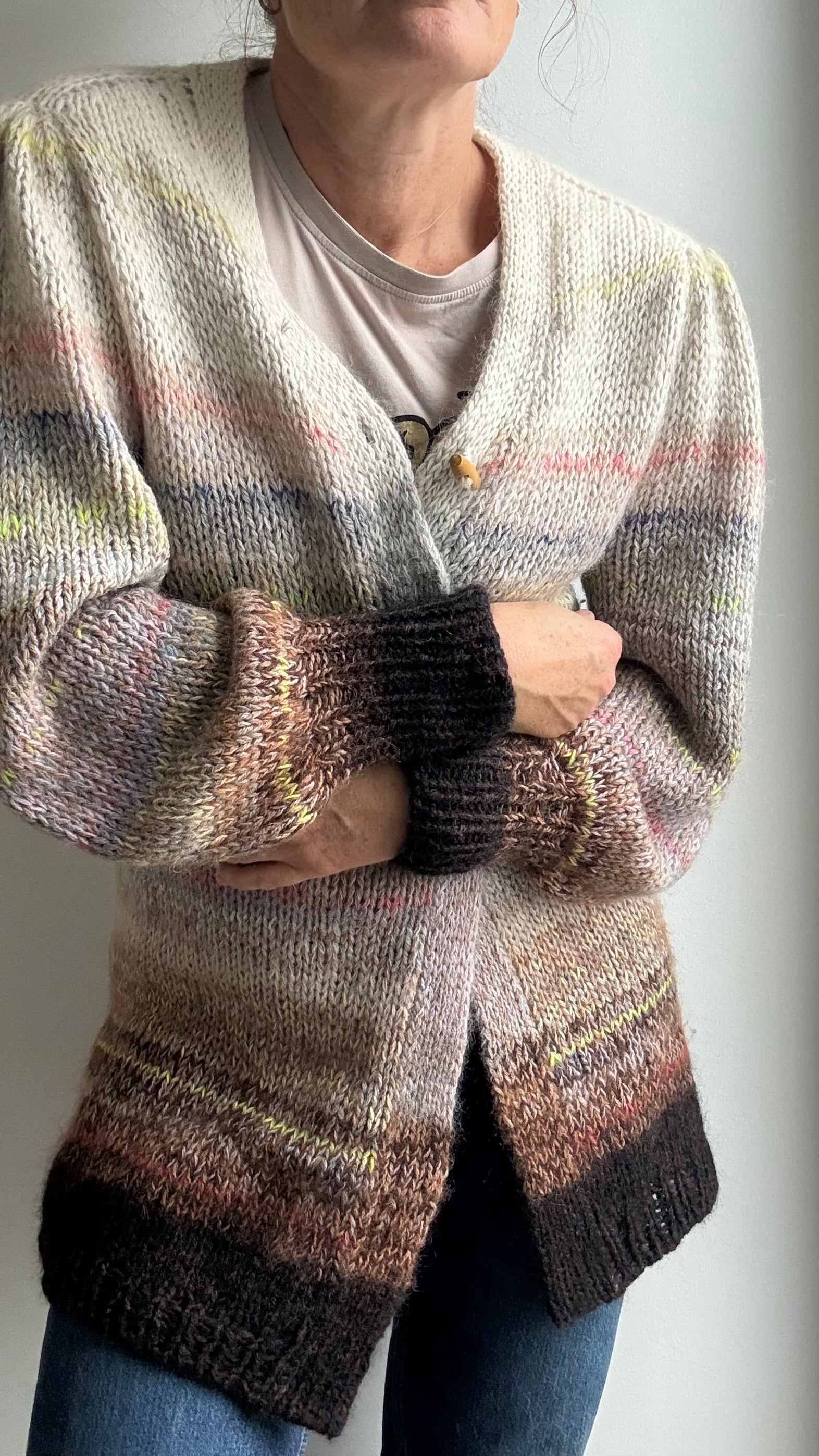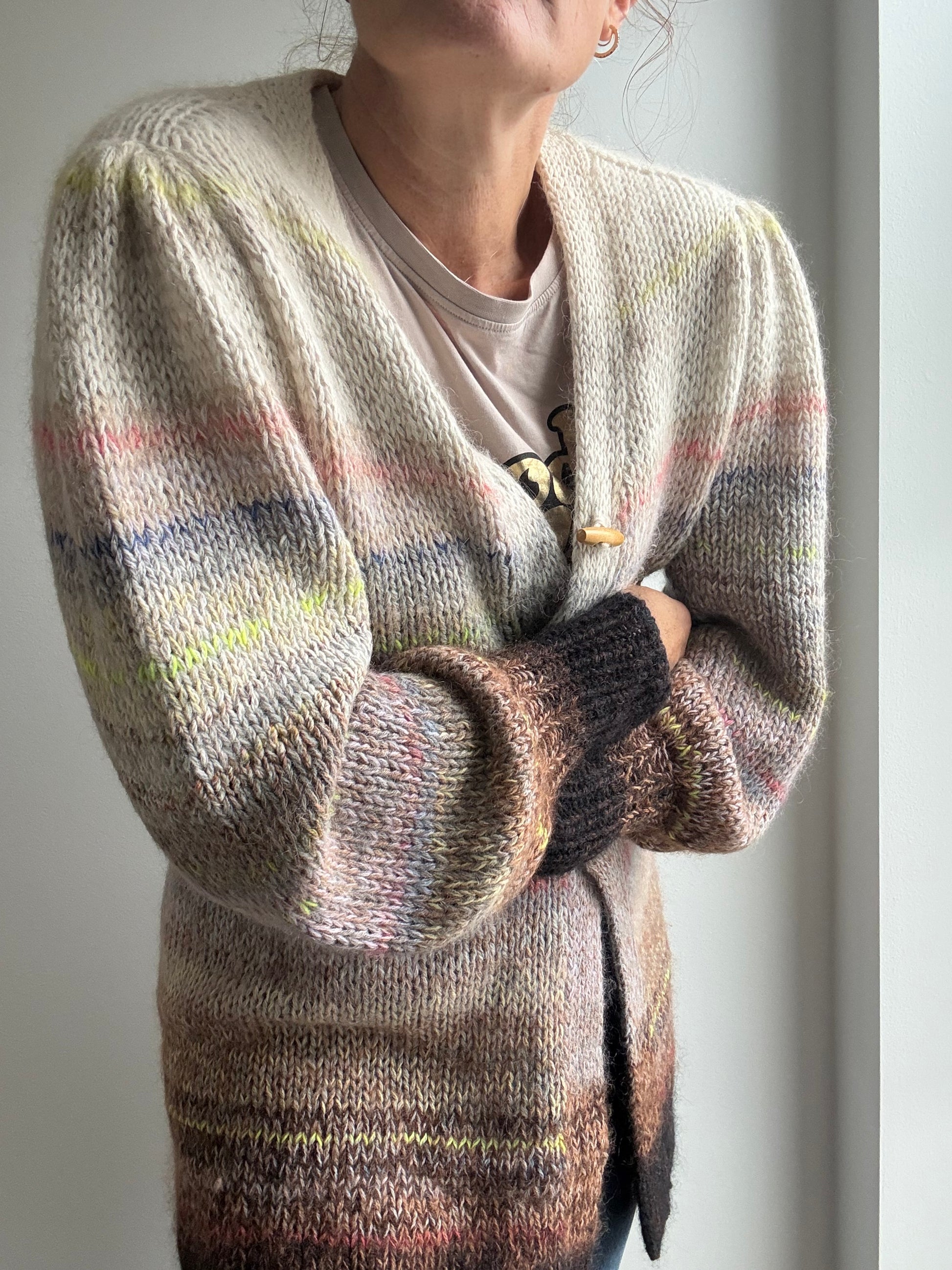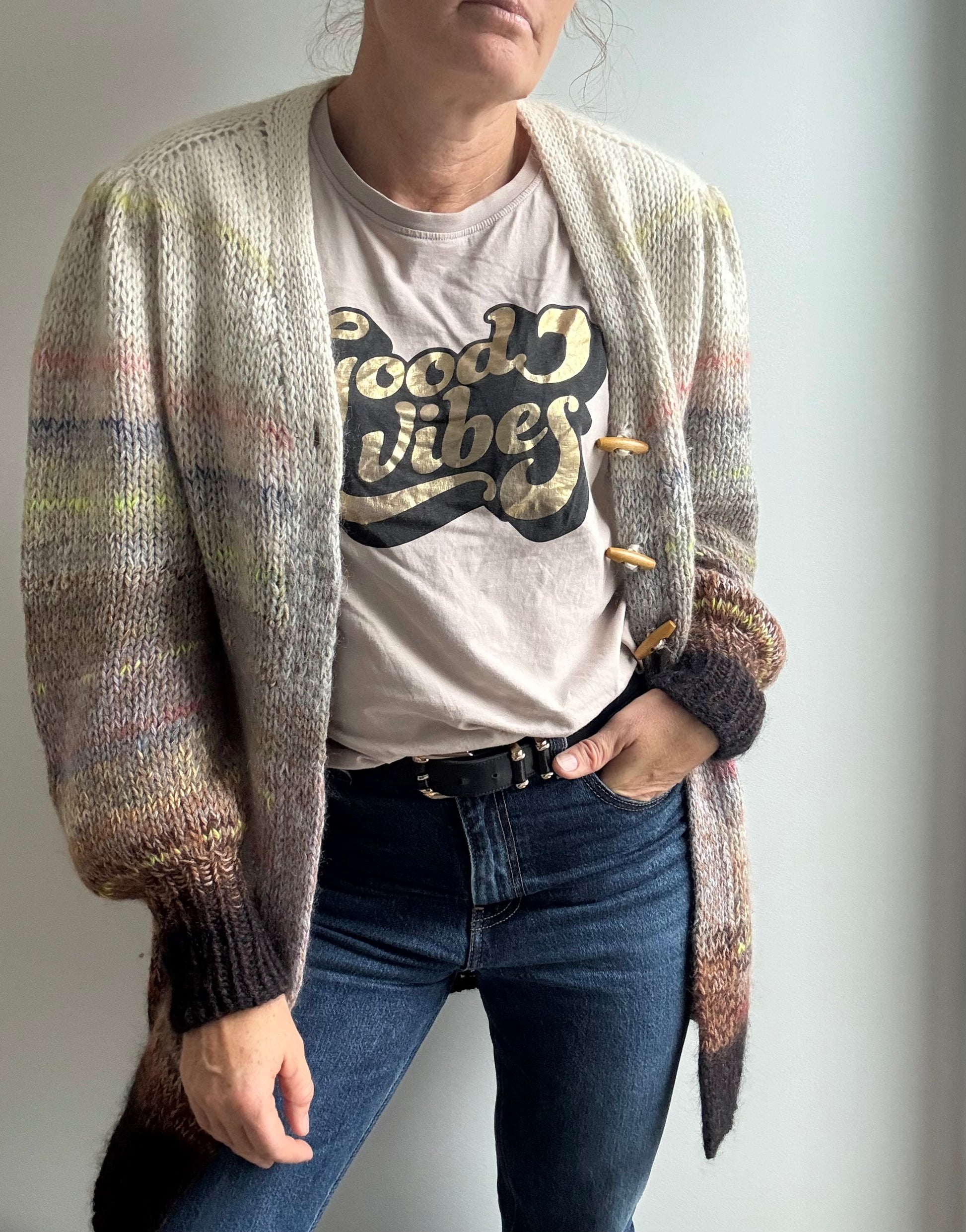 Yarn: Puff Your Vibe Cardi is worked holding 4 strains held together