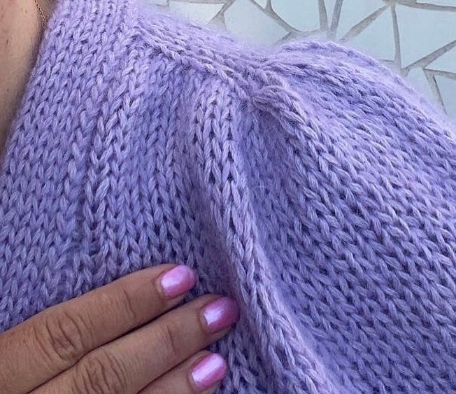 Description of Puff Your Vibe Cardi Puff Your Vibe Cardi is worked top down in stockinette stitch with raglan increases, saddle shoulders, and assemble-free puff sleeves created by increases. When the yoke is finished; the work is divided into the body and sleeves, which are finished separately. The body is worked back and forth in stockinette sts. The sleeves are worked in rounds using stockinette sts. Both the body and the sleeves are finished off with rib. Then the cardigan is turned inside out to reveal the purl sts from the wrong side. In the end, the button placket are worked in double knitting where the buttonholes are created along the way.